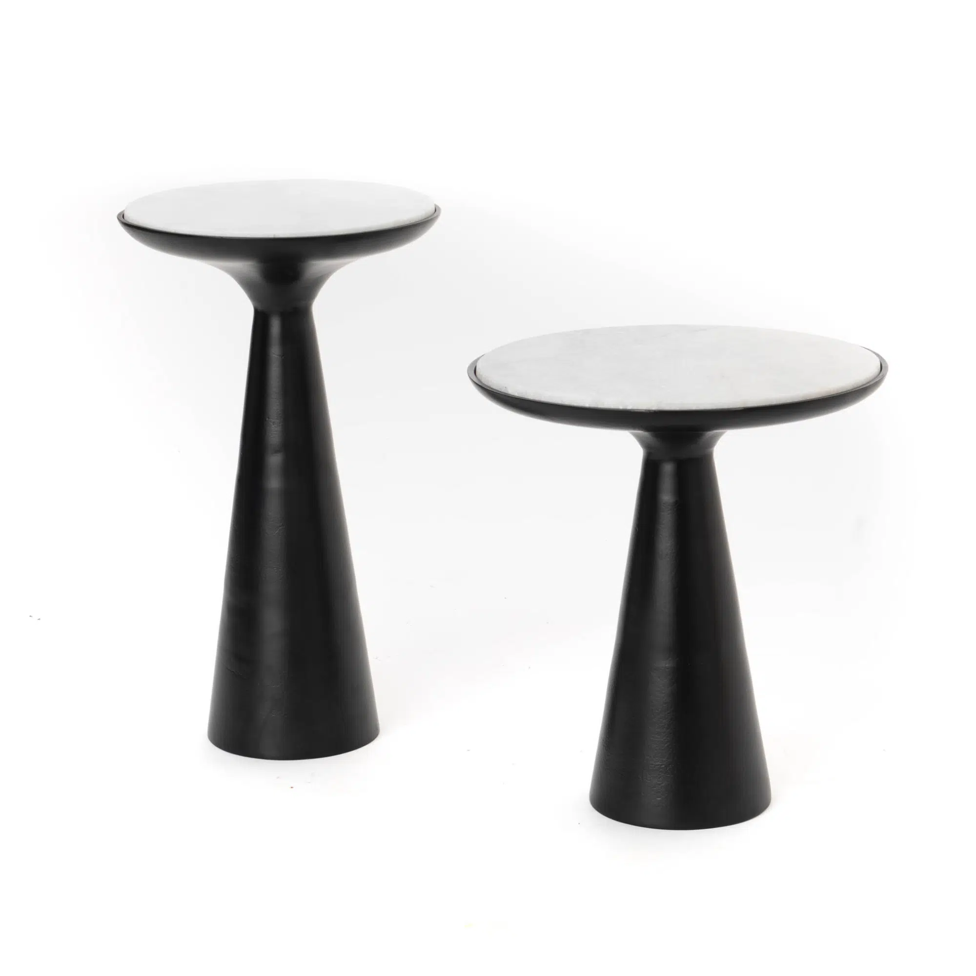 De bijzettafel Essy Black is een moderne en stijlvolle toevoeging aan elk interieur. Met een strak en minimalistisch design straalt deze bijzettafel een eigentijdse elegantie uit. De tafel bestaat uit een metalen poot met een marmeren tafelblad.