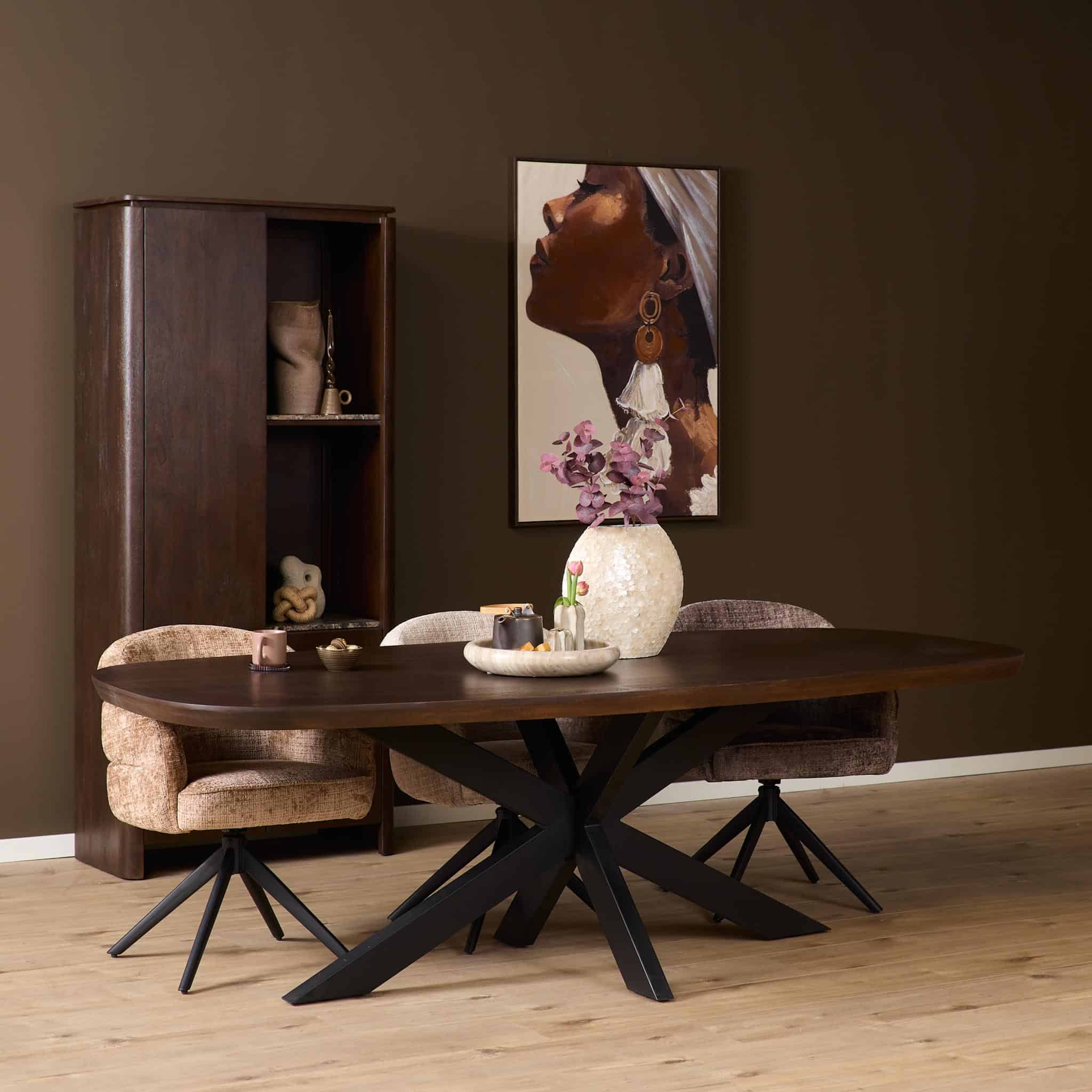 De Eettafel Madison Brown is een stijlvolle blikvanger voor jouw eetkamer. Het Deens ovale tafelblad in een bruine kleur straalt luxe en gezelligheid uit. De stevige zwarte metalen tafelpoot geeft een moderne touch. Beschikbaar in meerdere afmetingen, perfect voor elke ruimte!