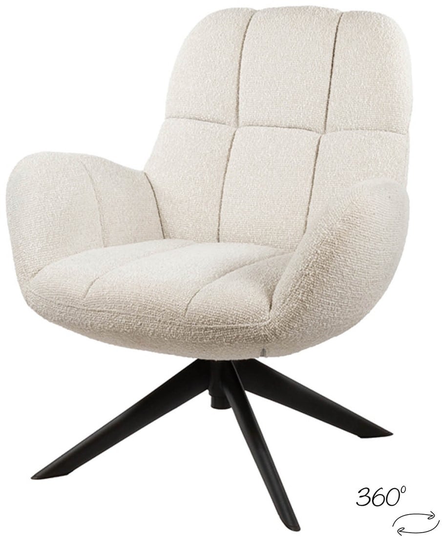 Draaifauteuil Marianne is een moderne stoel bekleed met de zachte stof Monet. De zitting van de stoel is afgewerkt met een stoer blokstiksel. Daarnaast is deze fauteuil is voorzien van een kruispoot uit zwart metaal, met een 360 graden draaifunctie. Verkrijgbaar in de kleuren pearl en antraciet.
