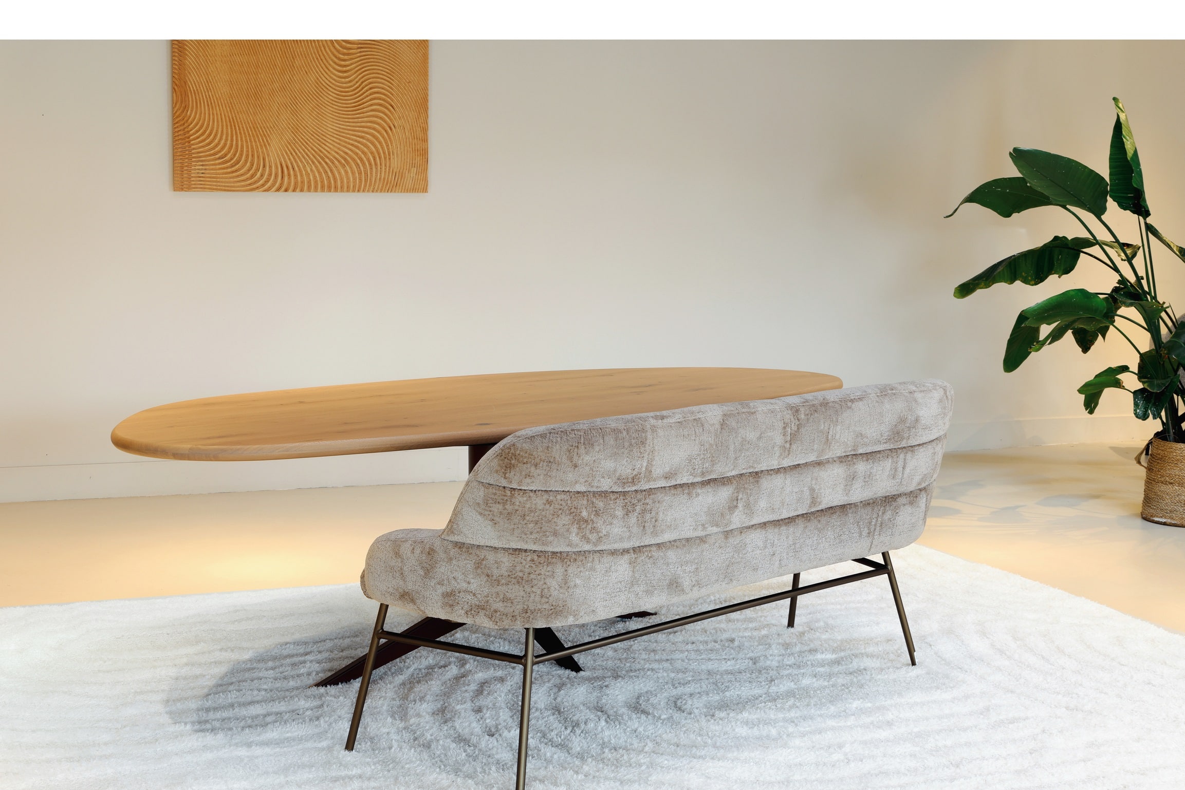 Eetkamerbank Simone combineert luxe, comfort en een verfijnd design. Dankzij de vele keuzemogelijkheden in maat en framekleur stem je deze bank perfect af op jouw interieur.