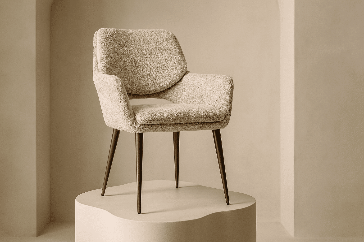 Aarhus is de perfecte mix van Scandinavische eenvoud en luxueus comfort – een stoel die stilte en schoonheid samenbrengt.