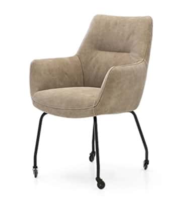 Eetkamerstoel Arevla met skate-wielen is de perfecte voor een avond heerlijk tafelen. Deze stoel is leverbaar in 150 kleuren stof.