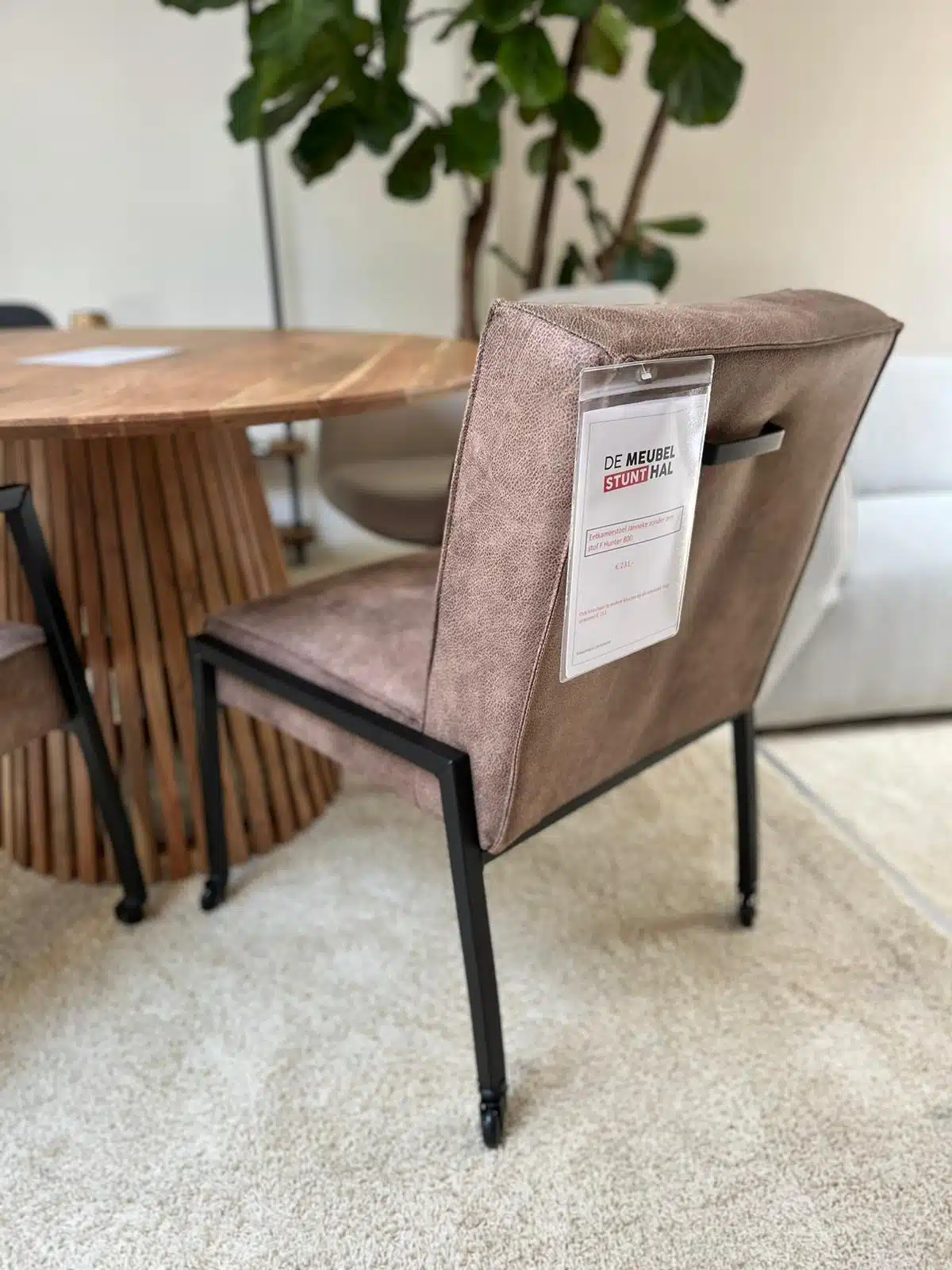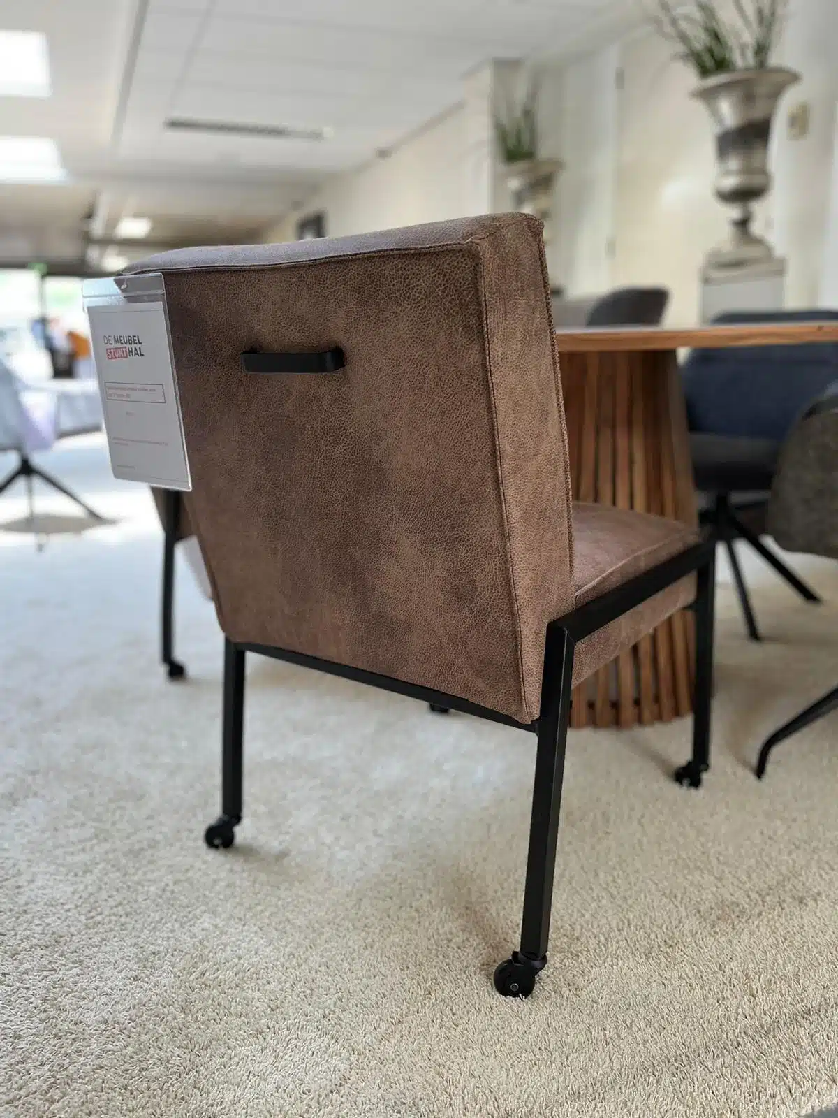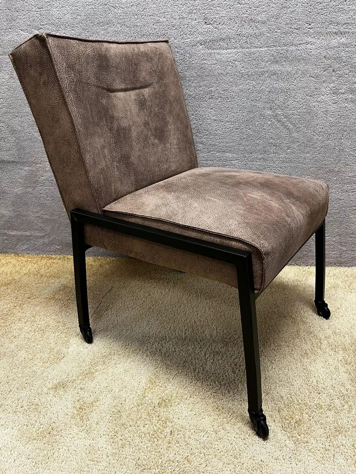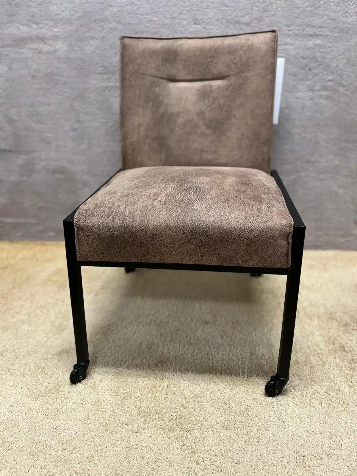Eetkamerstoel Janneke zonder arm stof F Hunter 800 en skate-wielen.