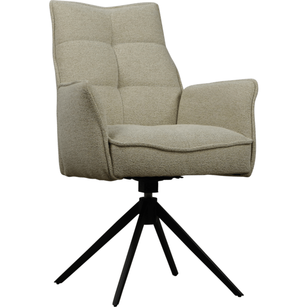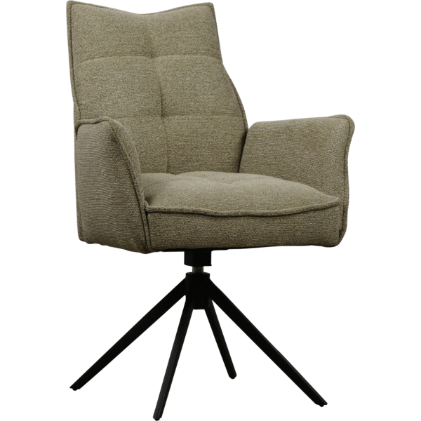 Eetkamerstoel Menno is uit voorraad leverbaar in de stof Sahara 120, 400, 460 Ook leverbaar zonder arm en draaibaar in de stof Sahara 120, 400, 460.