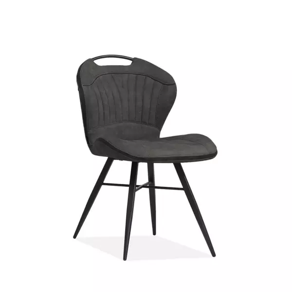 Deze moderne stoel Sven straalt stevigheid uit en biedt een comfortabele zitervaring dankzij de hoge rugleuning en de zachte, duurzame microvezel bekleding. De stoel kan naadloos worden gecombineerd met een ronde tafel en krijgt een stoere toets dankzij het opvallende sierstiksel en de retro zwarte kruispoot. De gebogen vorm van de zitting en de rugleuning verhoogt het comfortniveau, waardoor deze stoel geschikt is voor gebruik aan de eettafel en op de werkplek. Bovendien kun je de stoel moeiteloos verplaatsen dankzij het handige handvat aan de bovenkant van de rugleuning. Breedte: 54 cm Hoogte: 87 cm Diepte: 62 cm Zithoogte : 49,5 cm