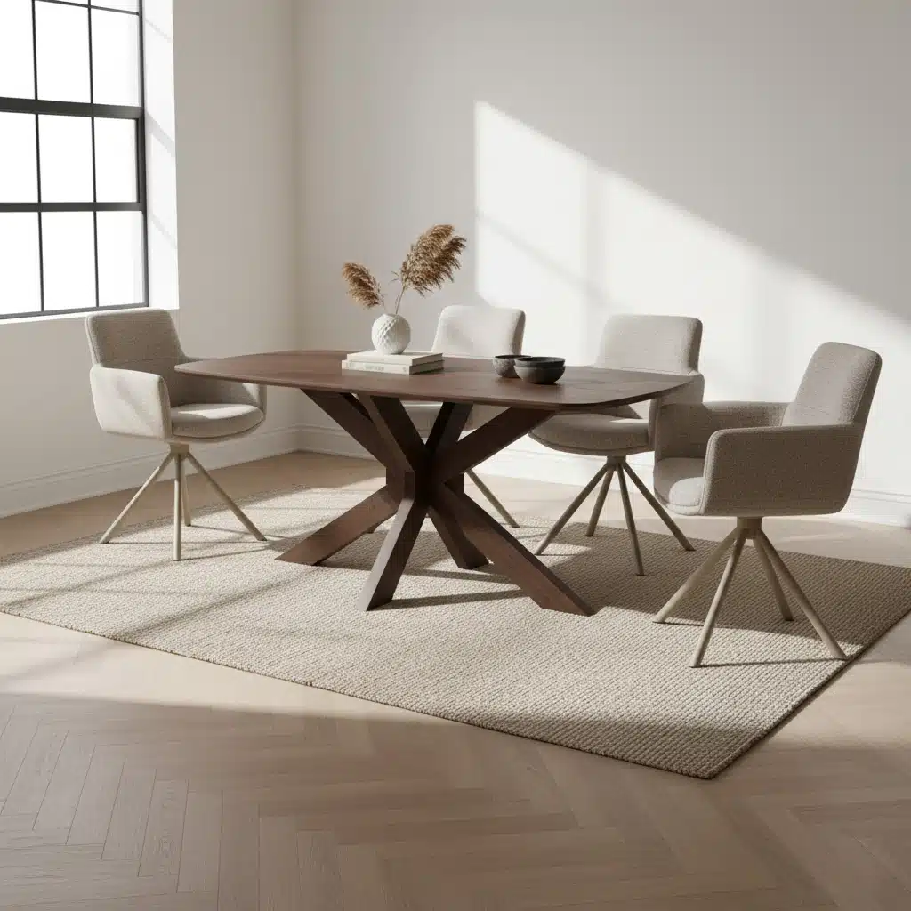 Het blad én het onderstel zijn volledig uitgevoerd in hetzelfde duurzame acaciahout, wat zorgt voor een krachtig en harmonieus geheel. De Deens ovale vorm geeft de tafel een elegante en zachte uitstraling, terwijl de stevige constructie zorgt voor jarenlang gebruiksplezier. Vanaf nu is deze prachtige tafel in onze showroom te bewonderen.
