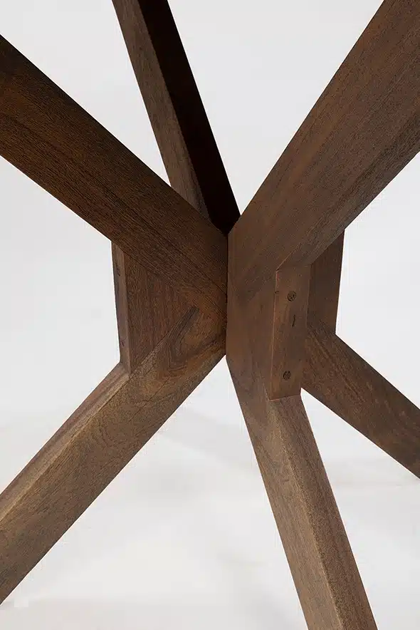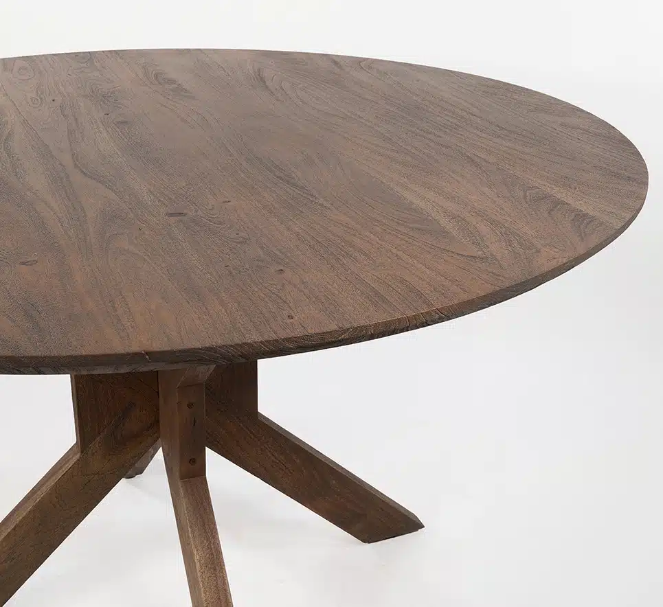 Het blad en het onderstel zijn volledig uitgevoerd in hetzelfde hout en in dezelfde kleur, wat zorgt voor een rustgevende en hoogwaardige uitstraling. Dankzij het ronde ontwerp zit iedereen aan tafel op gelijke afstand, ideaal voor sociale momenten aan tafel.