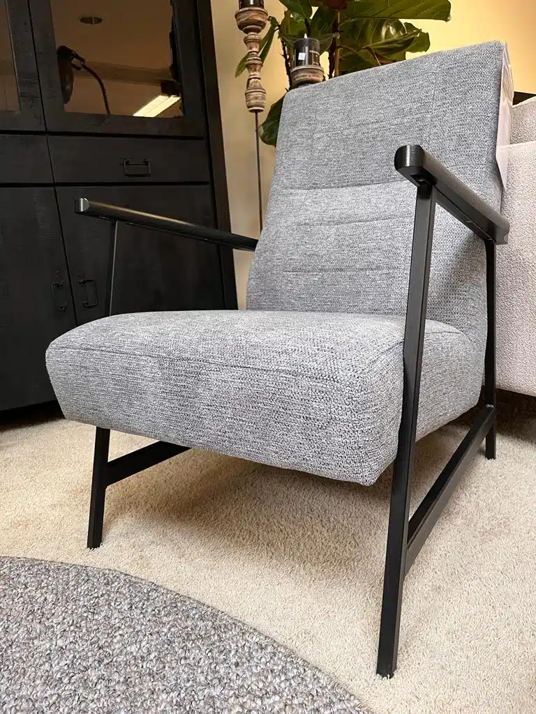 Fauteuil Evita is een prachtige stoel en heeft een zachte stof. Leverbaar in 100 verschillende kleuren/stoffen. Verder is de fauteuil uitgevoerd met stoere zwarte poten en armleuningen.