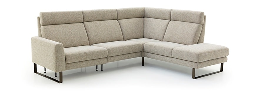 De hoekbank Ans met hoge rug biedt optimaal comfort en is volledig samen te stellen naar uw persoonlijke voorkeur. U heeft de keuze uit verschillende zitcomforts: sandwichvulling, HR-vulling of pocketvering.
