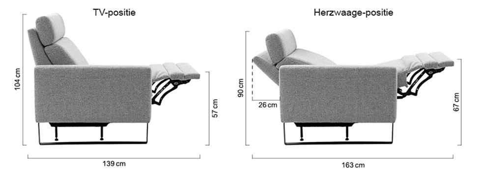 Wilt u extra ontspannen en samen genieten met de benen omhoog? Dan is de bank uit te breiden met een relaxfunctie met twee motoren.
