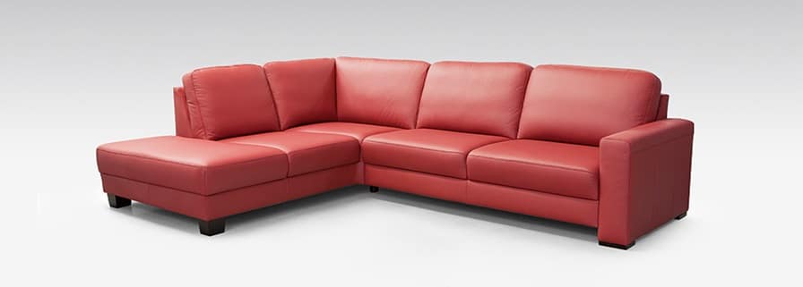Hoekbank Jessica. Leverbaar in diverse afmetingen, diverse kleuren stof en leer. Huidige afmeting 222 x 170 cm