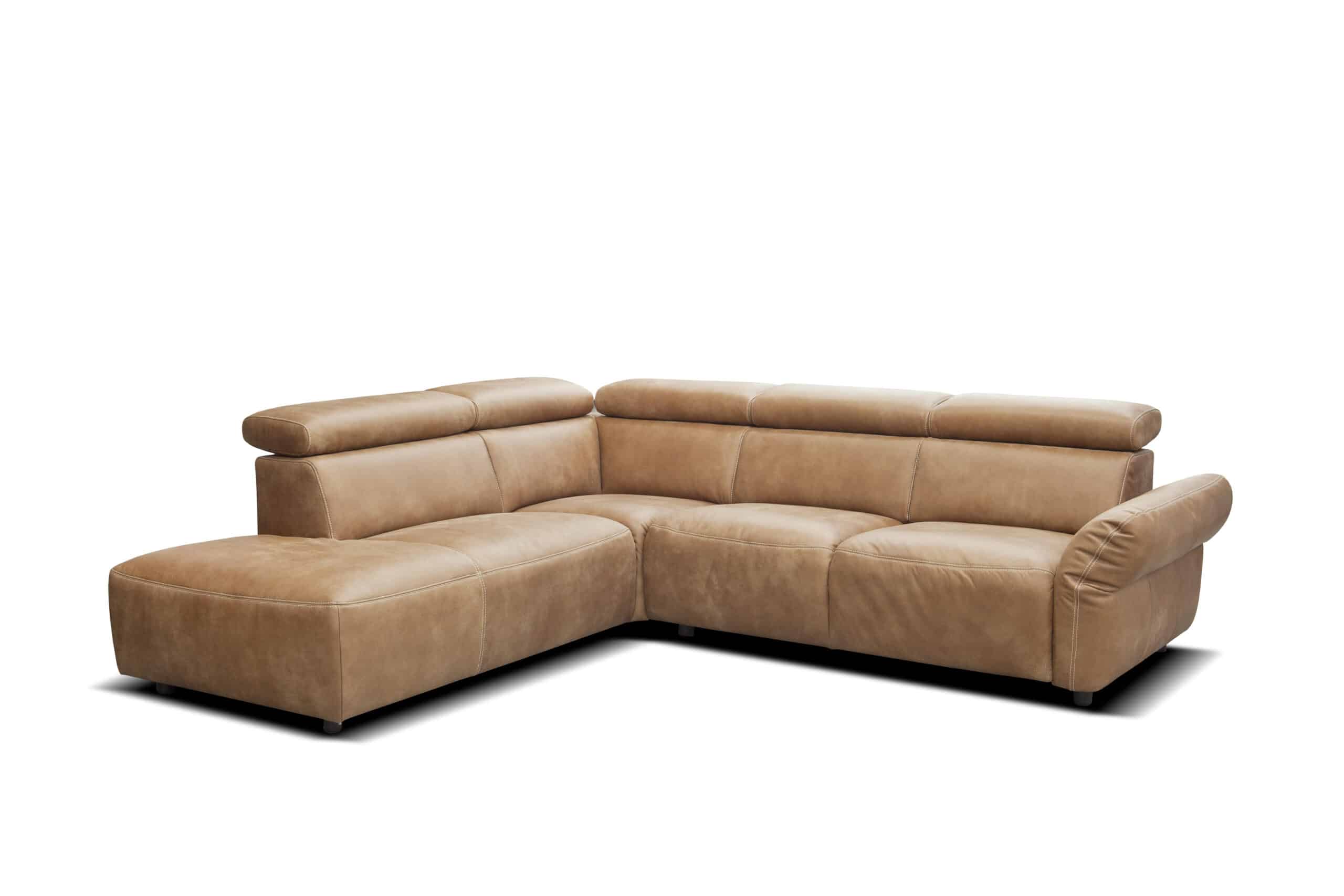 Hoekbank Mila heeft verstelbare hoofdsteunen en een dichte voorkant.