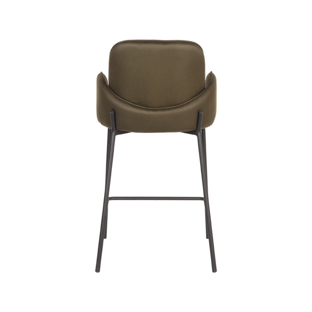 Barkruk Jari van LABEL51, uitgevoerd in army microvezel heeft wel een heel indrukwekkend design met zijn prachtige ronde vormen en armleuningen die achter de rugleuning doorlopen. Jari is het perfecte voorbeeld van design met maximaal comfort.