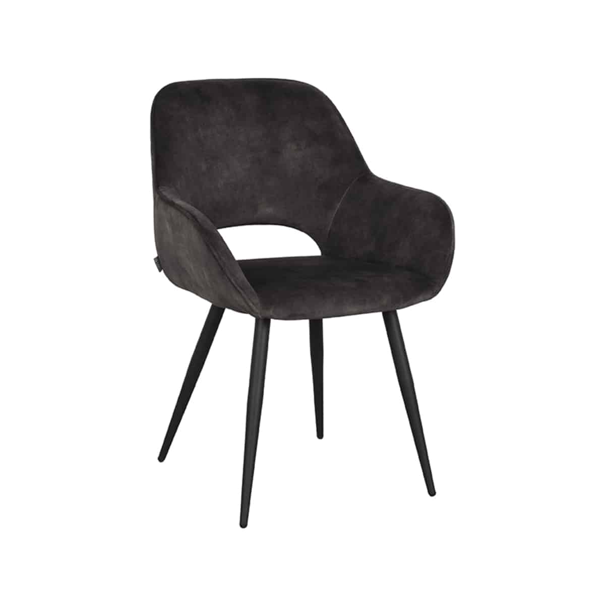 Eetkamerstoel Fer van LABEL51 is een prachtige armstoel uitgevoerd in antraciet velours waar comfort en verfijning samen komen. De mooie zitting met een speelse uitsparing in de rugleuning in combinatie met de fraaie zwarte poten maken Fer tot een topper in zijn segment.