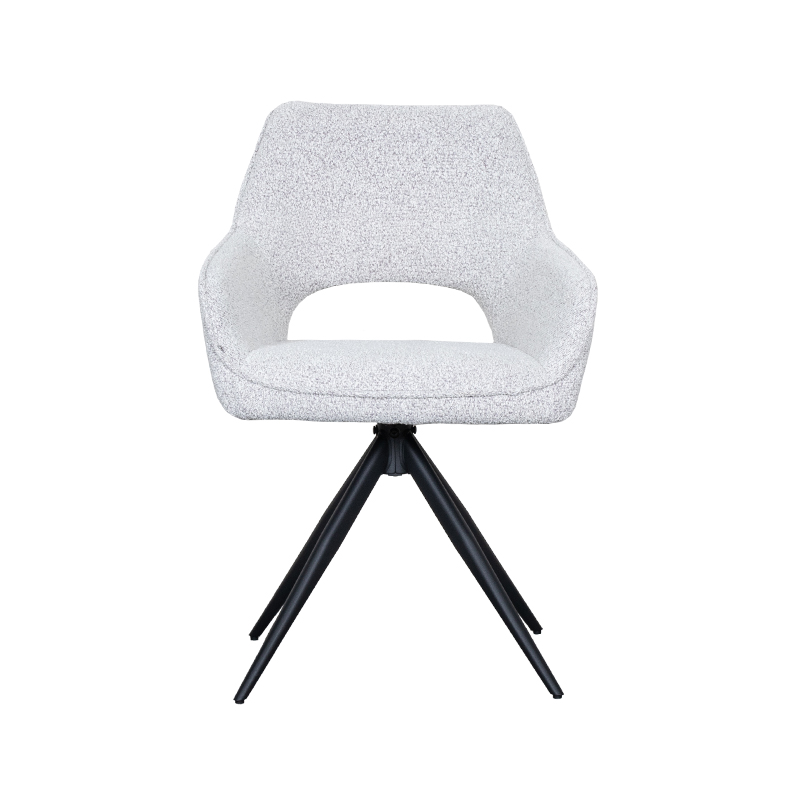 Eetkamerstoel Finley van LABEL51 is een elegante en moderne toevoeging aan elke eetkamer. Deze stoel, uitgevoerd in de trendy stof boucle, heeft een luxe uitstraling door zijn zachte textuur en subtiele structuur. De champagne kleur van de stof zorgt voor een tijdloze en stijlvolle uitstraling, waardoor deze stoel perfect is voor een minimalistisch of modern interieur. De afgeronde rugleuning en armleuningen zorgen voor extra comfort en omarmen je tijdens het zitten.