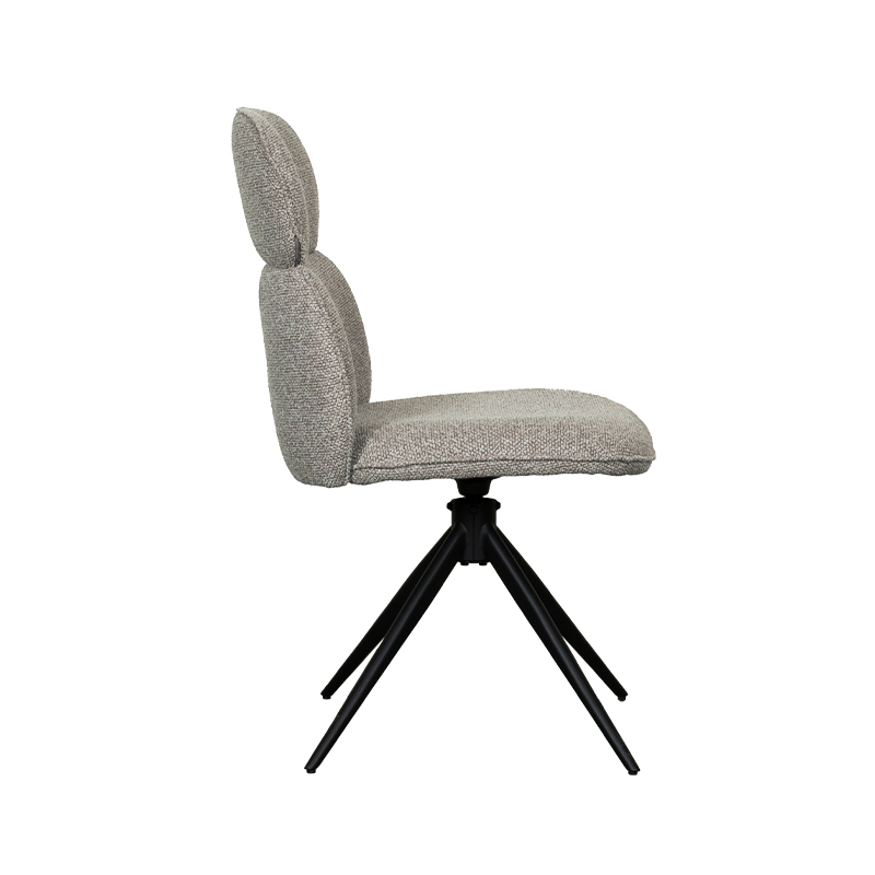 Eetkamerstoel Finn van LABEL51 is de perfecte mix van stijl en comfort. Deze draaistoel is uitgevoerd in de prachtige stof Mushroom royal bouclé, die een elegante en warme uitstraling geeft. Het zachte bouclé zorgt voor een luxe en gezellige sfeer in jouw interieur. De stoel heeft een unieke uitstraling dankzij de afgeronde vormen en het minimalistische, moderne onderstel in zwart metaal.
