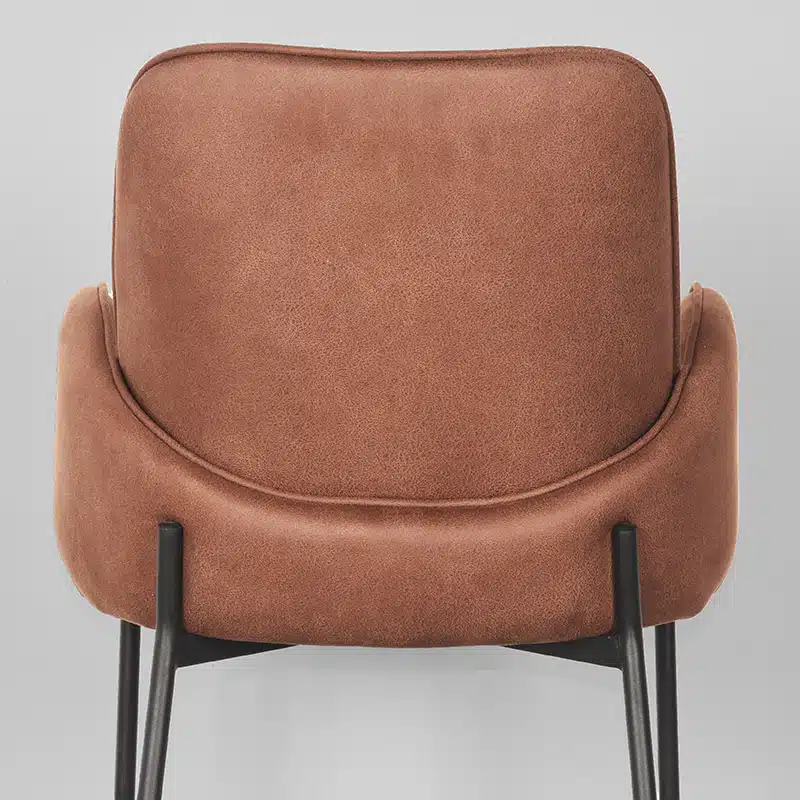 Eetkamerstoel Jari van LABEL51, uitgevoerd in cognac microvezel heeft wel een heel indrukwekkend design met zijn prachtige ronde vormen en armleuningen die achter de rugleuning doorlopen. Jari is het perfecte voorbeeld van design met maximaal comfort.