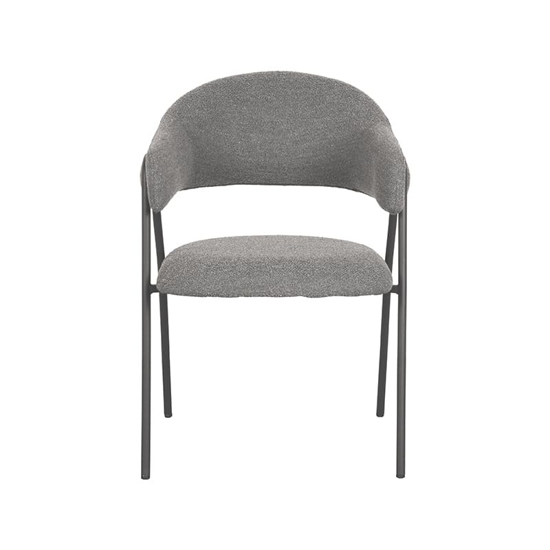 Eetkamerstoel Lowen van LABEL51, uitgevoerd in grijs bouclé is een prachtige en elegante stoel gemaakt van de mooiste materialen. Het frame, die de verbinding vormt tussen de rugleuning en zitting maakt deze stoel extra bijzonder.