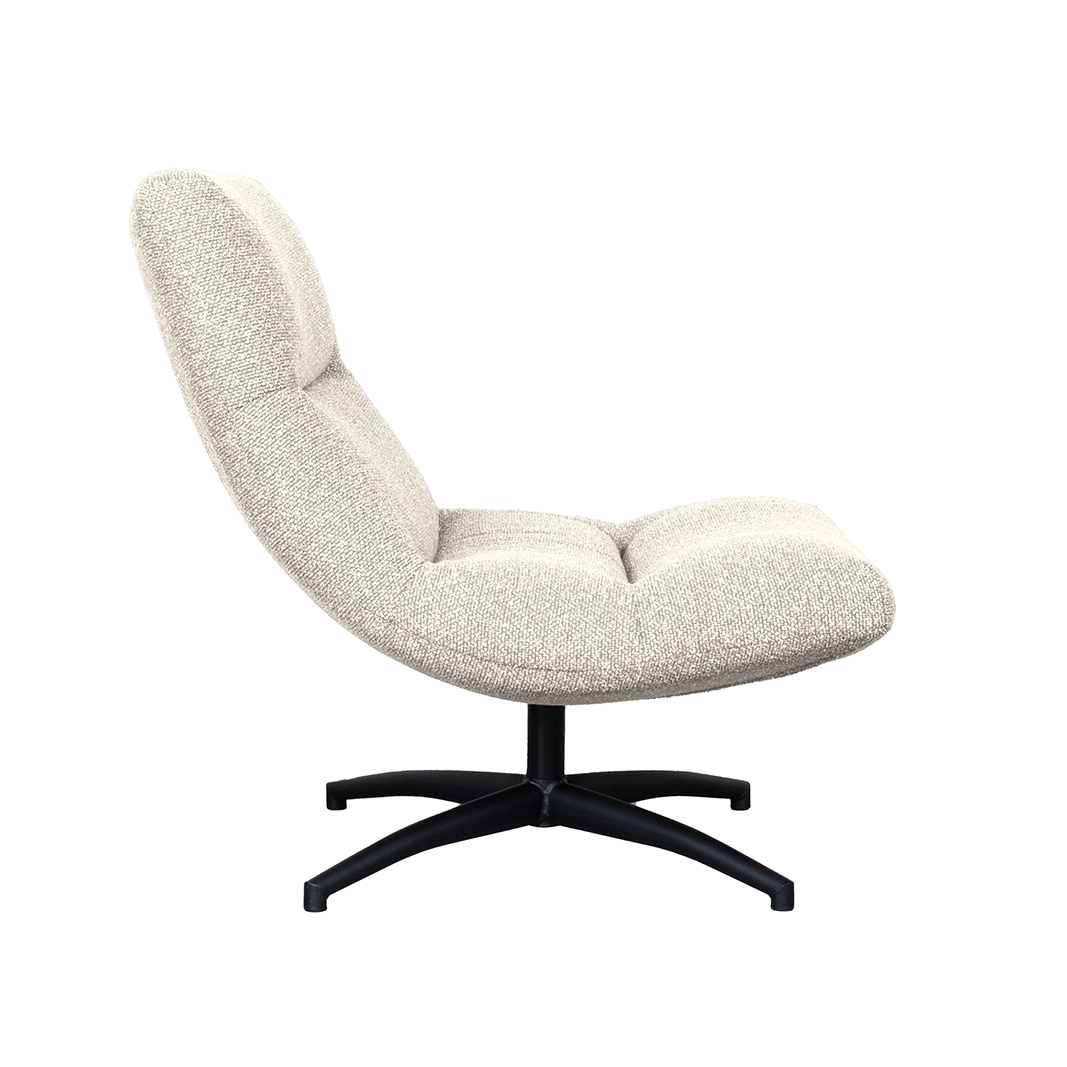 Draaifauteuil Calix van LABEL51 is een echte elegante eyecatcher. Deze fauteuil combineert stijlvol comfort met een eigentijds ontwerp. Uitgevoerd in de luxueuze stof Naturel royal boucle, geeft de Calix een zachte en rijke uitstraling aan elke ruimte. De boucle stof heeft een subtiele, wollige textuur, wat zorgt voor een aangename zitervaring en een uitnodigende sfeer.