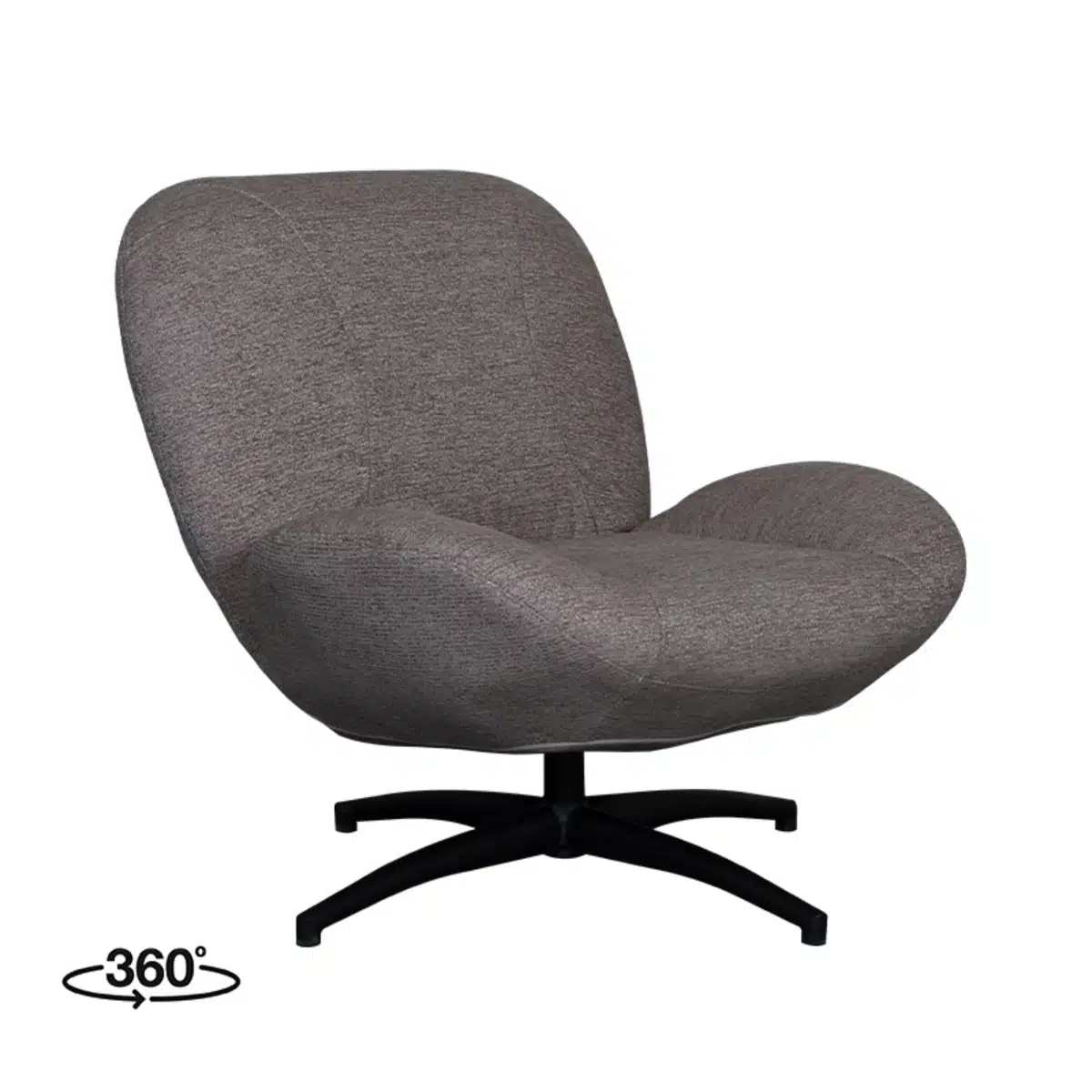 Draaifauteuil Clayton van LABEL51 is een moderne, comfortabele stoel die perfect past in een eigentijds interieur. Uitgevoerd in de watervaste stof Taupe Canyon, geeft de stoel een zachte en uitnodigende uitstraling. Het royale design en de afgeronde vormen maken van deze fauteuil een echte eyecatcher in de woonkamer of zithoek.