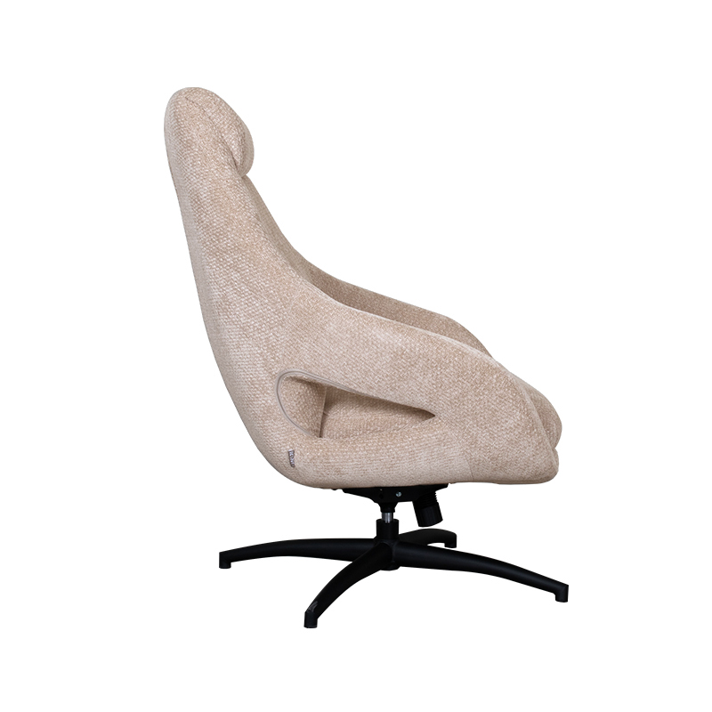 Draaifauteuil Maxwell van LABEL51 brengt comfort en stijl in ieder interieur. Maxwell is draaibaar en voorzien van een handige stelknop aan de onderkant van de zitting, waarmee je de kantelfunctie van de fauteuil kan verstellen. Hiermee kan je ervoor kiezen om lekker achterover te wiebelen, of om juist wat rechter op te zitten, afhankelijk van de situatie.