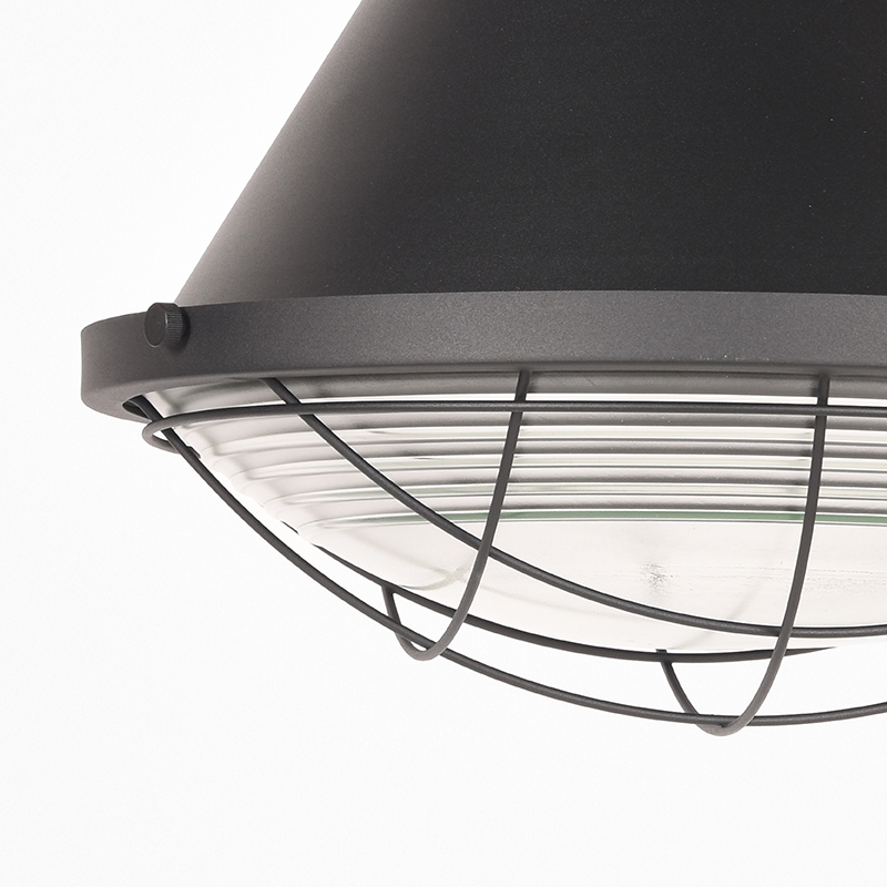 Hanglamp Duisburg van LABEL51 is een enorm grote, robuuste lamp, uitgevoerd in de kleur zwart, geinspireerd op de ouderwetse fabriekslamp.