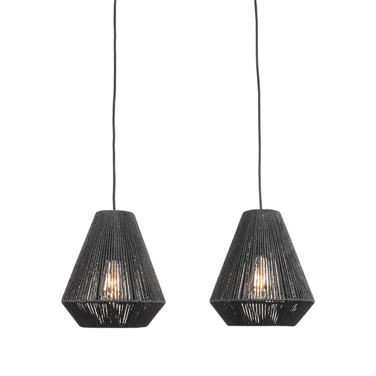 Hanglamp Ibiza 2-lichts van LABEL51 is een karakteristieke lamp waarmee je een stukje Ibiza, en daarmee heel veel sfeer in huis haalt. De lamp is voorzien van twee grote diamantvormige vaste kappen, hangend op dezelfde hoogte. De kappen zijn gemaakt van prachtig zwart jute gecombineerd met stoer zwart metaal. Deze frisse combinatie zorgt voor een chique twist en geeft bij uitstek een huiselijk gevoel.