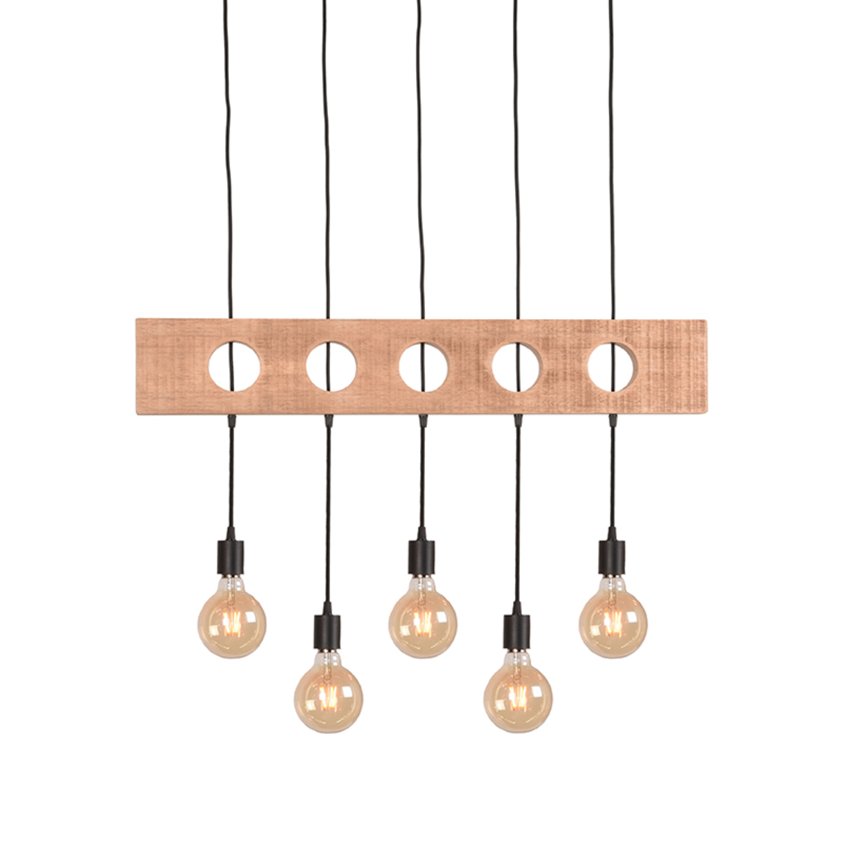Hanglamp Timber van LABEL51 is een speelse lamp met een opvallend en uniek design. Timber biedt ruimte om maar liefst vijf lichtbronnen te plaatsen, voor de maximale lichtopbrengst. De robuuste houten basis gecombineerd met de speelse strijkijzerkoorden in verschillende lengtes maken deze lamp tot een sensationeel item.