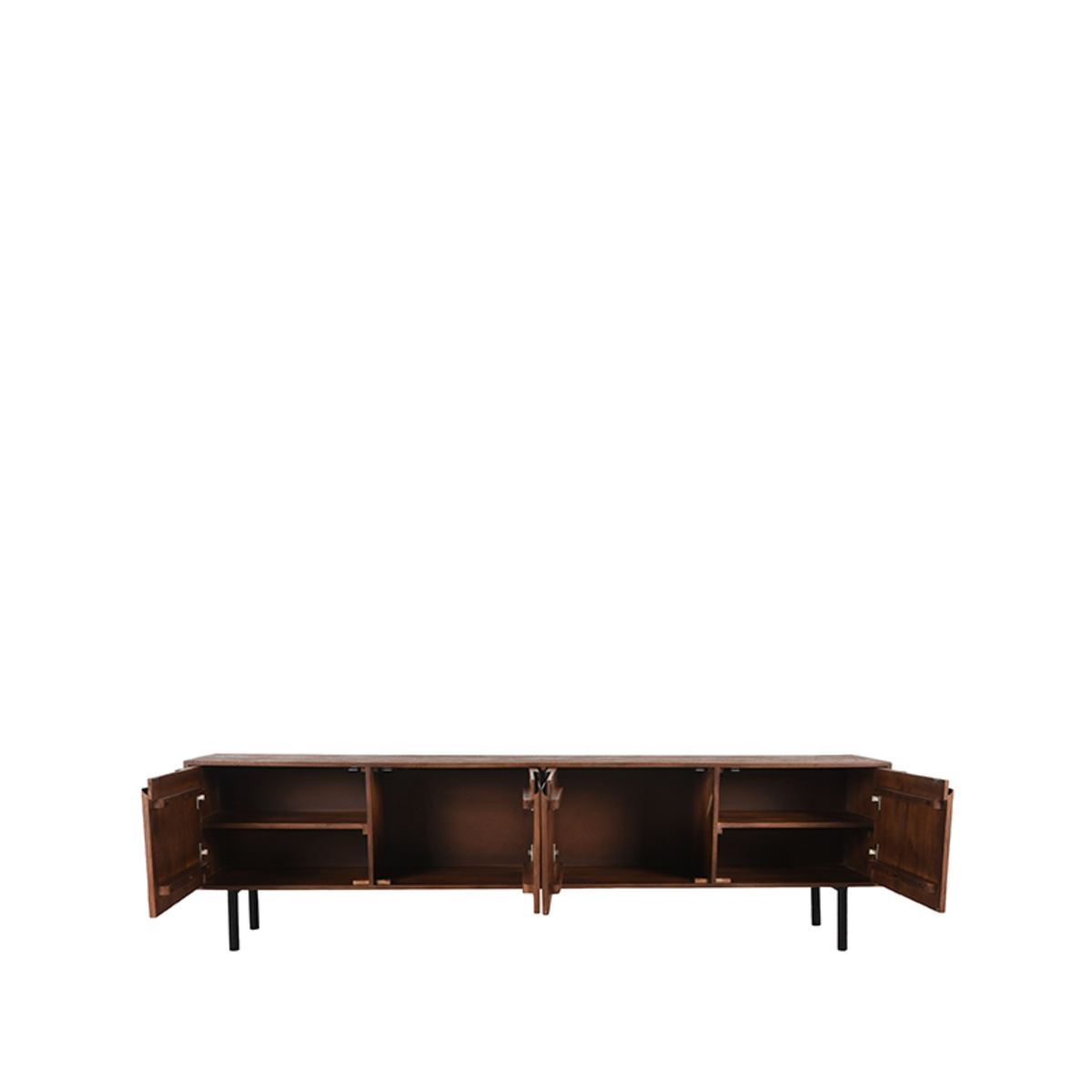 Tv-Meubel Rio van LABEL51 is een indrukwekkende kast, uitgevoerd in espresso mangohout met structuur. Tv-Meubel Rio kenmerkt zich door zijn mooie simplistische vormen en lijnen. Rio is een slim vormgegeven meubel die echt een plaatje is onder jouw TV.