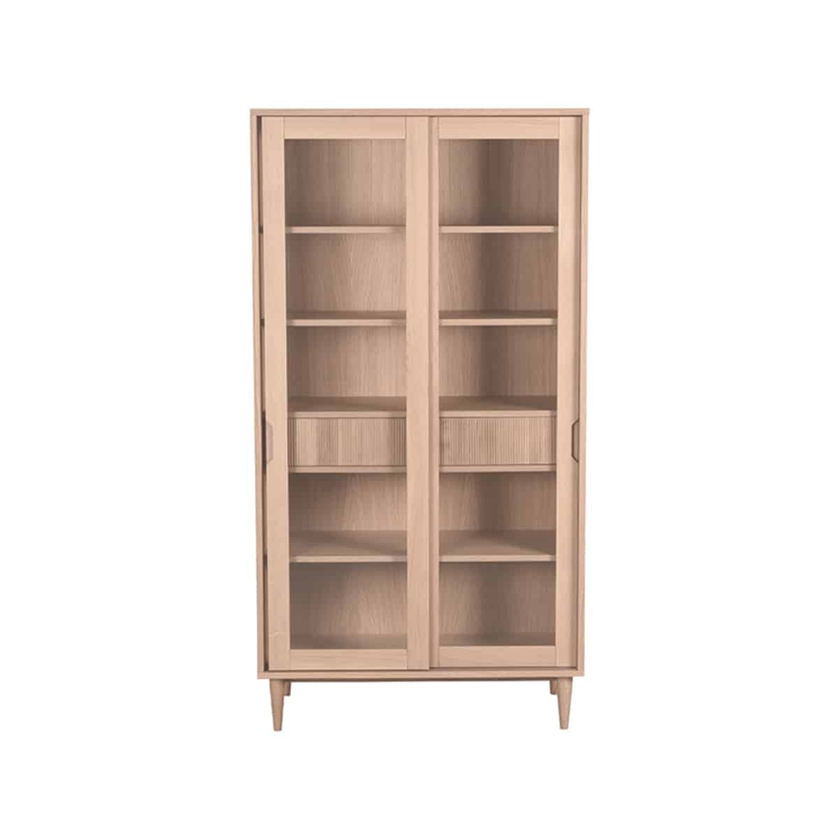 Vitrinekast Jule van LABEL51 is een trendy meubel uitgevoerd in eikenfineer. Een strak vormgegeven meubel waar al jouw spullen in opgeborgen kunnen worden.