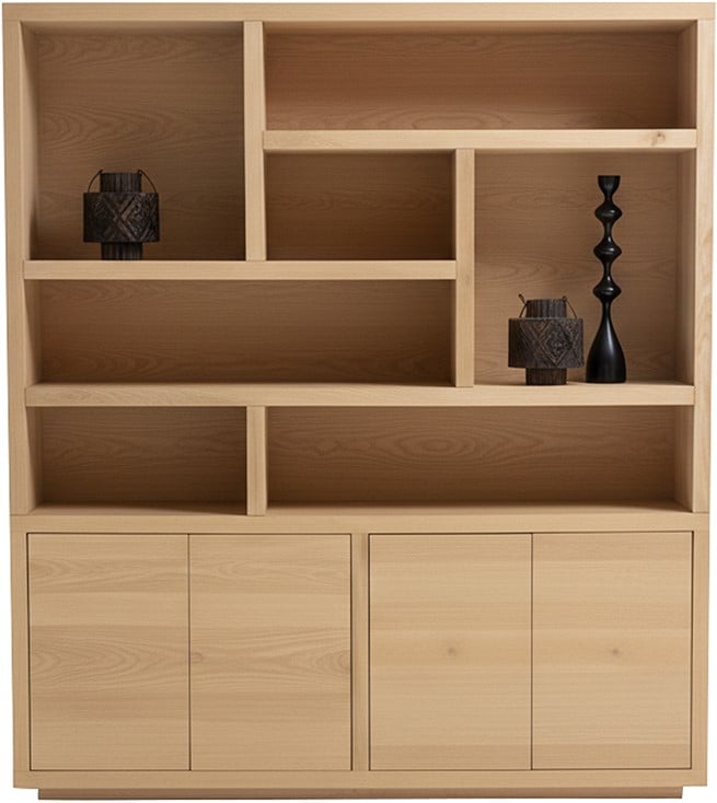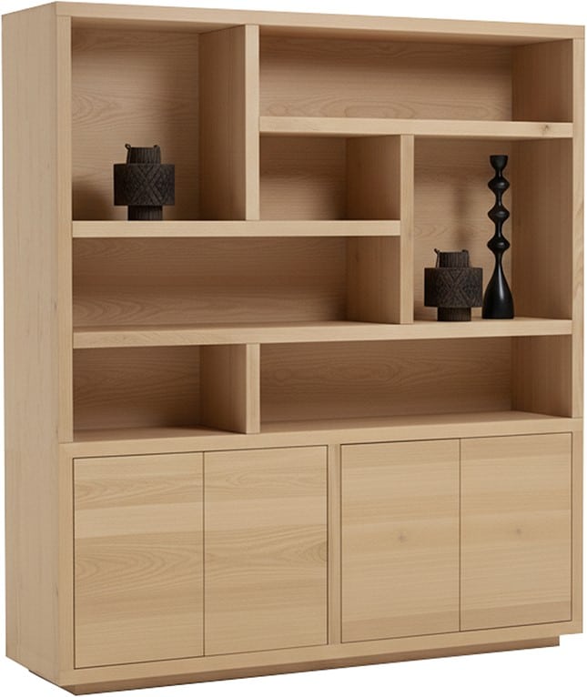 Tampere boekenkast 200 met 4 deuren en 7 open vakken, Natural Oak
