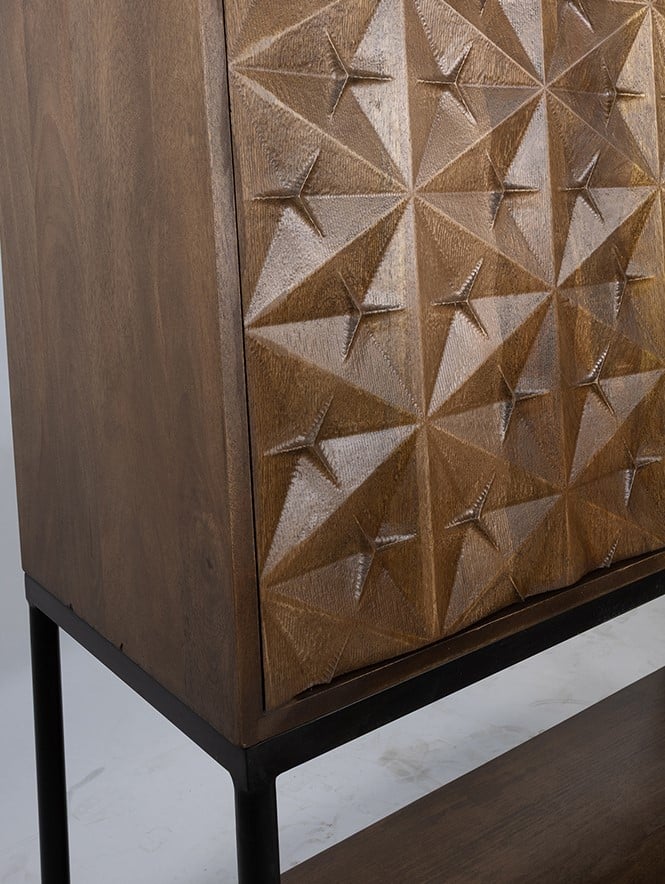 De 2-deurs kast Trinity is een tijdloos meubelstuk van hoogwaardig mangohout. Beschikbaar in Mango Brown Walnut, het biedt ruime opbergruimte met een luxe uitstraling. Perfect voor diverse interieurstijlen.