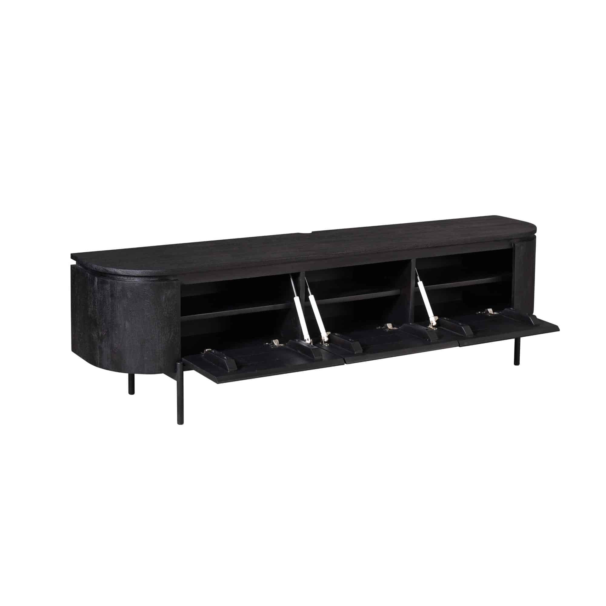Ontdek het stijlvolle tv-meubel Excellent Black, gemaakt van mangohout. Het zwevende ontwerp schept een gevoel van ruimte in de woonkamer, waardoor een luchtige en open sfeer ontstaat. Liever een tv-meubel op pootjes? Bij dit meubel worden de pootjes meegeleverd, zodat u hem eenvoudig om kunt toveren tot een staand model. Met een keuze uit verschillende afmetingen en kleuren, past het tv-meubel perfect in elke interieurstijl. Dankzij de drie deurtjes biedt Excellent voldoende opbergruimte.