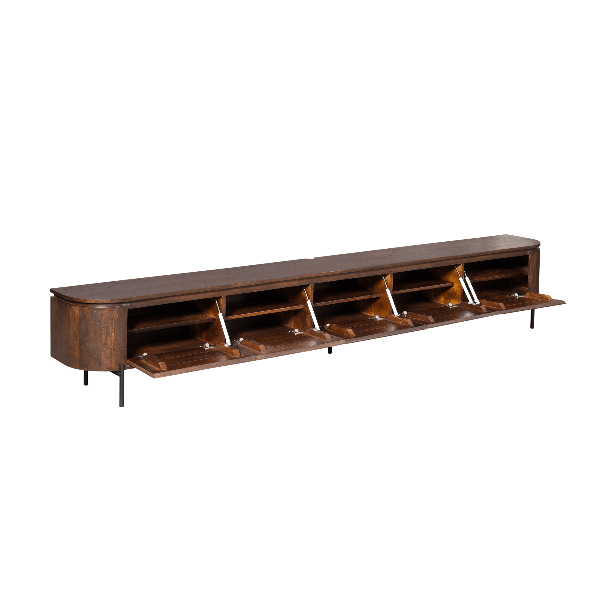 Ontdek het stijlvolle tv-meubel Excellent Brown, gemaakt van mangohout. Het zwevende ontwerp schept een gevoel van ruimte in de woonkamer, waardoor een luchtige en open sfeer ontstaat. Liever een tv-meubel op pootjes? Bij dit meubel worden de pootjes meegeleverd, zodat u hem eenvoudig om kunt toveren tot een staand model. Met een keuze uit verschillende afmetingen en kleuren, past het tv-meubel perfect in elke interieurstijl. Dankzij de vijf deurtjes biedt Excellent voldoende opbergruimte.