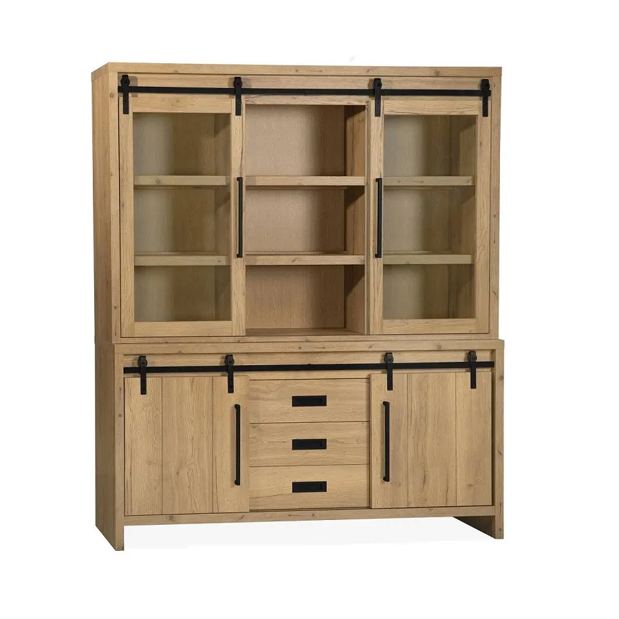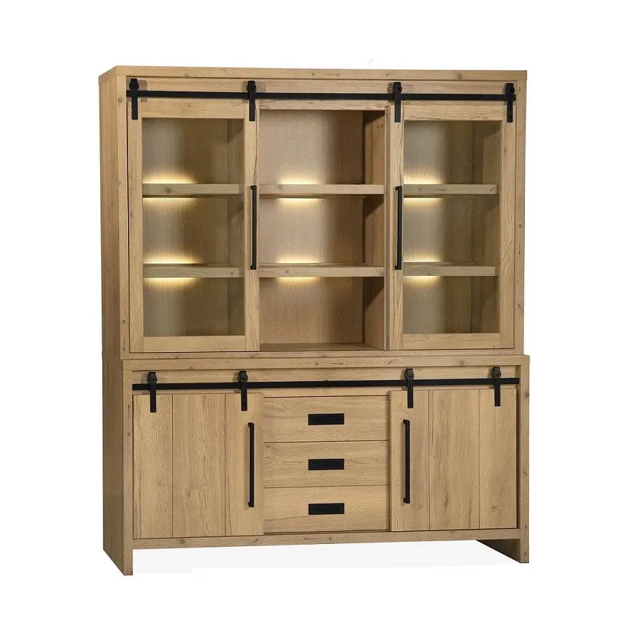 Vitrinekast Cottage is een prachtige kast van Lamulux voorzien van 2 glazen deuren, 3 open vakken, 3lades en 2deuren. Lamulux heeft de uitstraling van hout, maar de gemakken van kunststof. Het kan namelijk niet krimpen, uitzetten of scheuren. Daarnaast is het kindvriendelijk en onderhoudsvrij. Afnemen met een vochtige doek is al voldoende en behandelen is niet nodig. Het meubel is krasbestendig en door het materiaal gebruik erg duurzaam. Deze kast is onderdeel van het complete woonprogramma Cottage. Je kunt deze kast bestellen met of zonder verlichting.