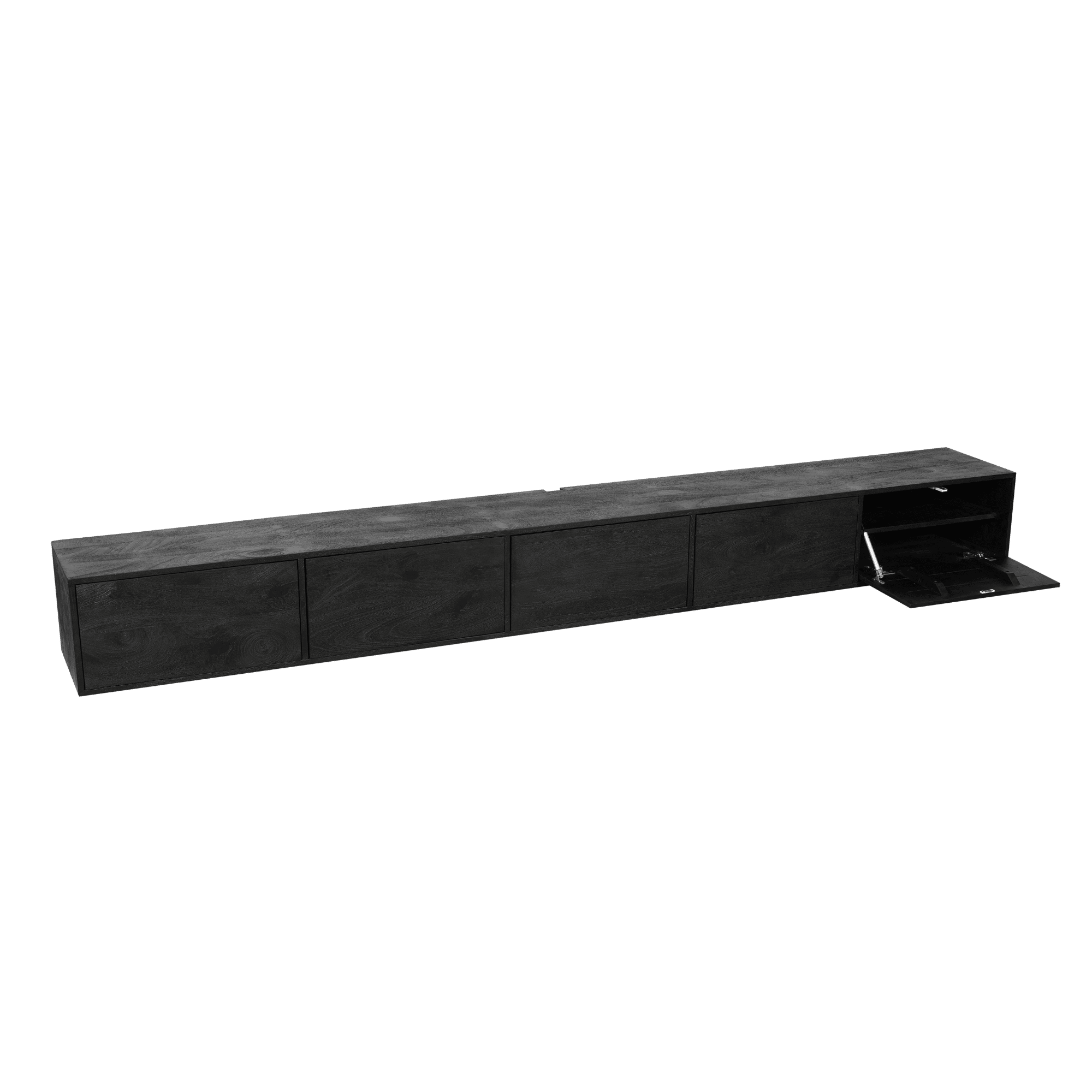 Zwevend tv meubel Vision is gemaakt van massief mangohout. Het model kenmerkt zich door zijn strakke uitstraling en is greeploze deurtjes. De deurtjes zijn voorzien van een push to open systeem. Het meubel is afgewerkt met een lak.