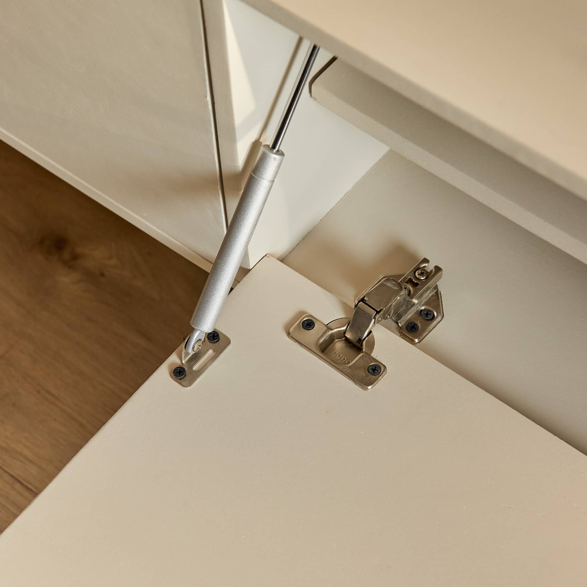 Zwevend tv meubel Vision is gemaakt van massief mangohout. Het model kenmerkt zich door zijn strakke uitstraling en is greeploze deurtjes. De deurtjes zijn voorzien van een push to open systeem. Het meubel is afgewerkt met een zand kleurige finish.